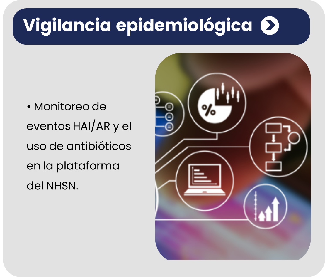 - Impulsar la detección, respuesta y contención a la resistencia de los antibióticos en los entornos del cuidado a la salud.