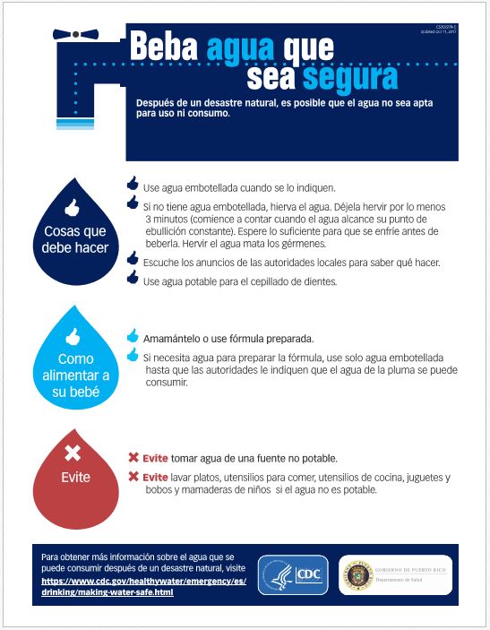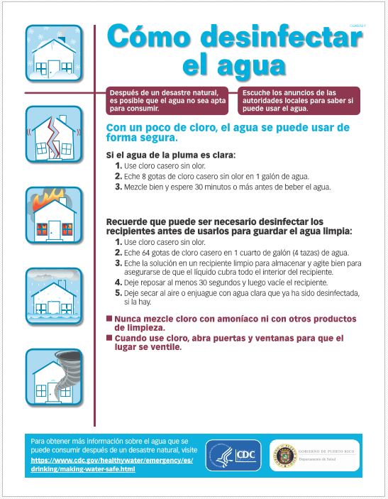 Este material educativo sobre enfermedades provocadas por la lluvia brinda orientación sobre temas tan importantes como: Medidas básicas de higiene; Evitar quemaduras por generadores eléctricos; Cómo manejar los alimentos, los zafacones y los escombros; Cómo potabilizar el agua después de un desastre y evitar la intoxicación por monóxido de carbono, entre otros.