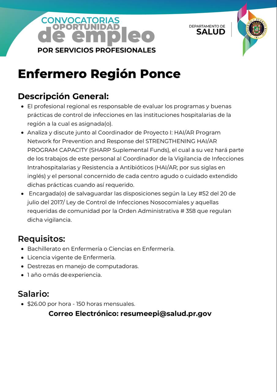 - Convocatoria: Enfermero región Ponce (CERRADA)