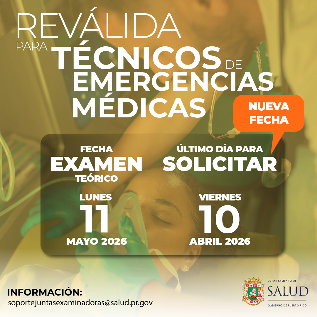 - Aviso Público: Convocatoria a Examen de Reválida para Técnicos de Emergencias Médicas (24 de septiembre de 2025, Primera Hora)
