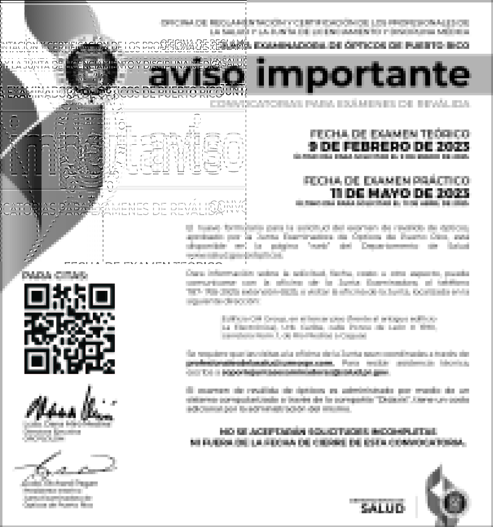 - Aviso Público: Convocatoria a Examen de Reválida para Ópticos (10 de diciembre 2024, Primera Hora y Nuevo Día)