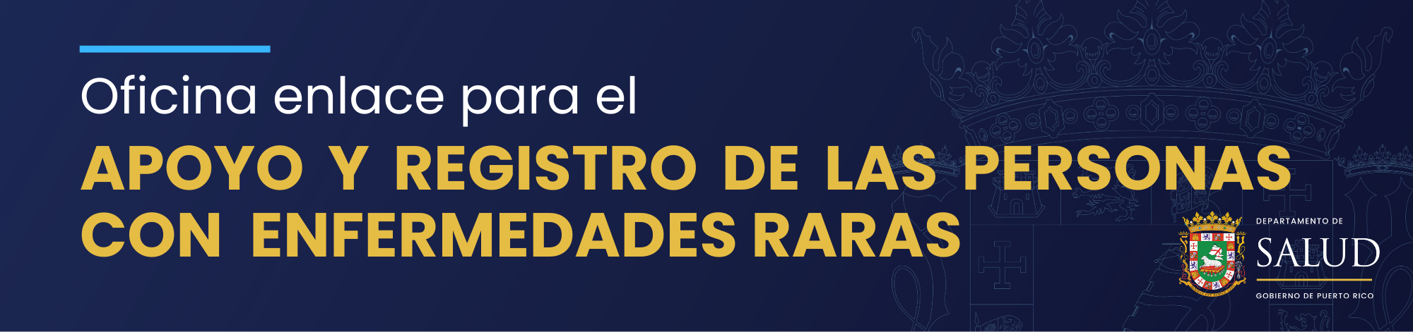 La Oficina Enlace para el Apoyo y Registro de las Personas con Enfermedades Raras fue establecida conforme a la Ley 9-2025 del Gobierno de Puerto Rico, la cual crea el Registro Oficial de Personas con Enfermedades Raras y designa a la oficina como entidad rectora responsable de la recopilación, validación, actualización y resguardo de datos poblacionales relacionados con estas condiciones. La oficina ejerce facultades oficiales dentro del Departamento de Salud y opera bajo los marcos regulatorios estatales y federales aplicables.