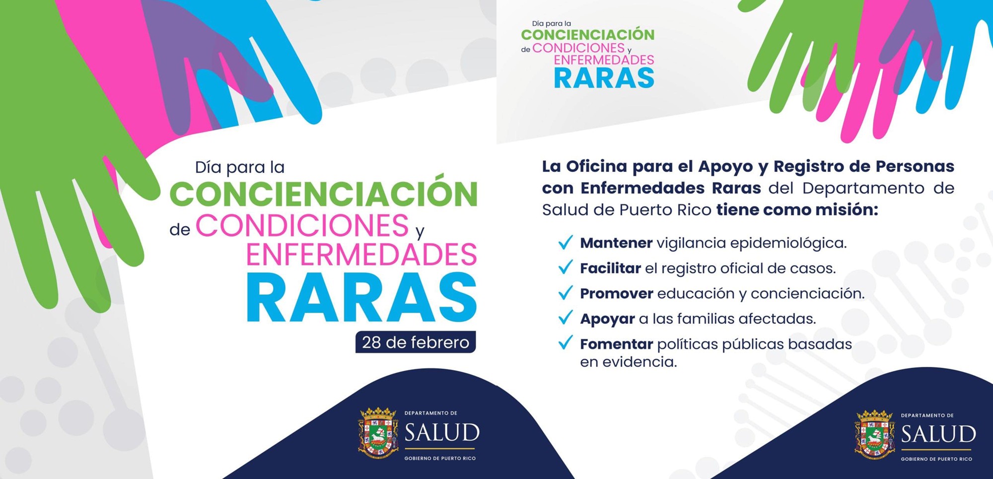 Dirigir y fortalecer el sistema oficial y centralizado de vigilancia y registro de enfermedades raras en Puerto Rico mediante la recopilación sistemática, validación técnica, análisis epidemiológico e interoperabilidad de datos, con el propósito de informar política pública basada en evidencia, optimizar la planificación estratégica del sistema de salud y garantizar acceso equitativo a servicios y apoyos especializados.