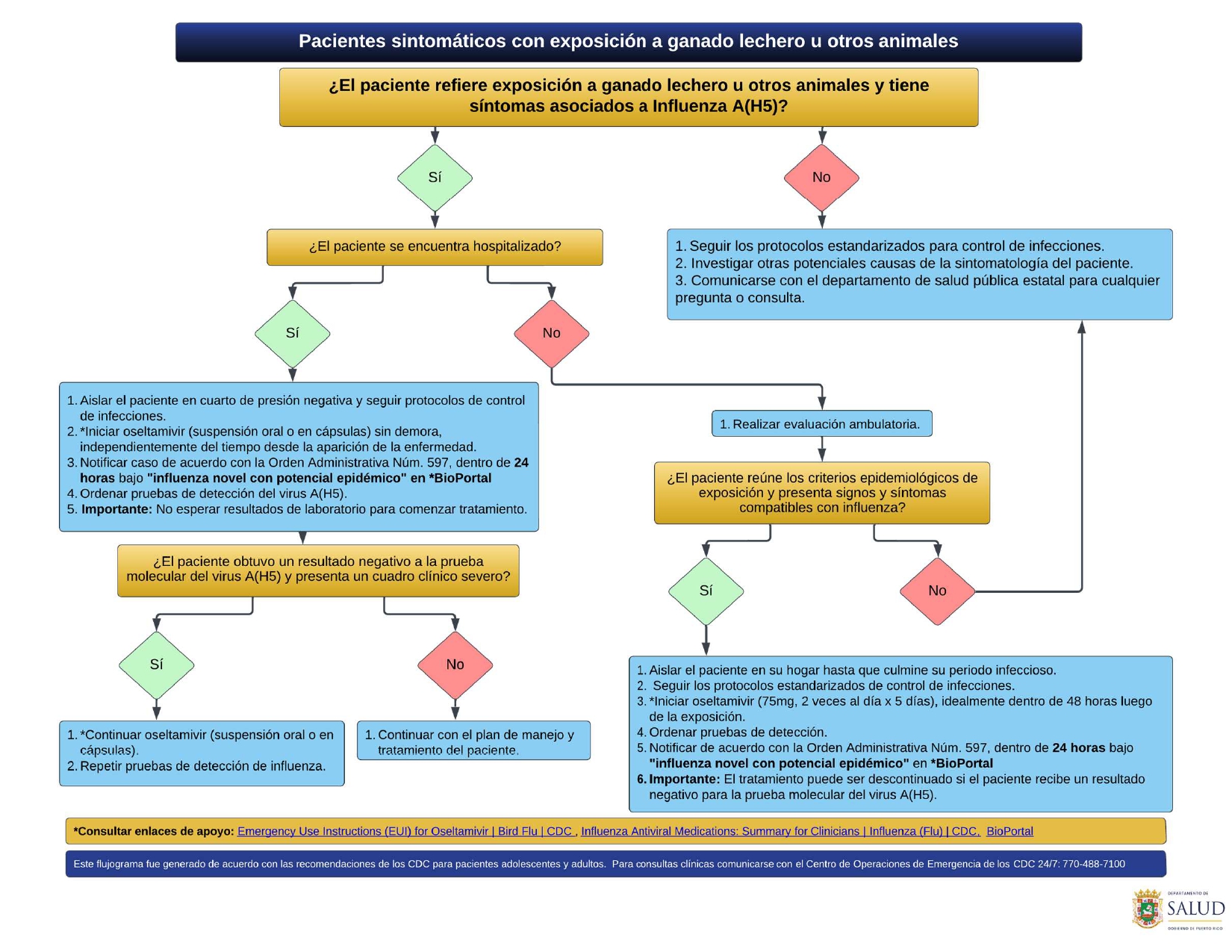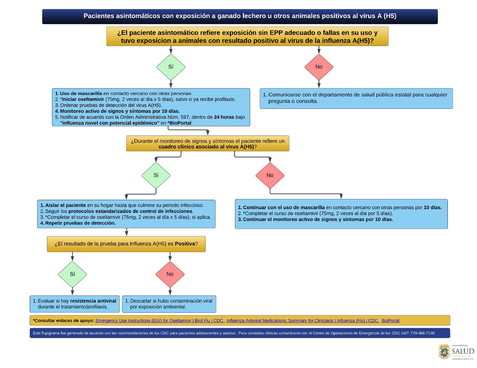 - Pacientes asintomáticos con exposición a ganado lechero u otros animales positivos al virus A (H5)