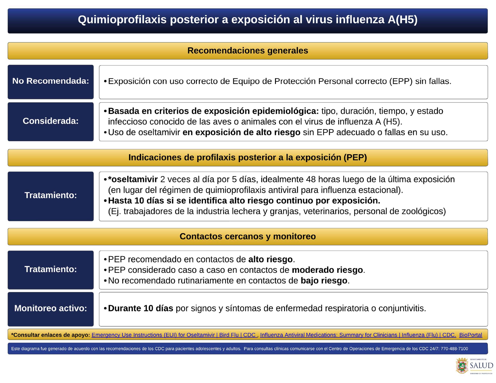 - Quimioprofilaxis posterior a exposición al virus de influenza A (H5)