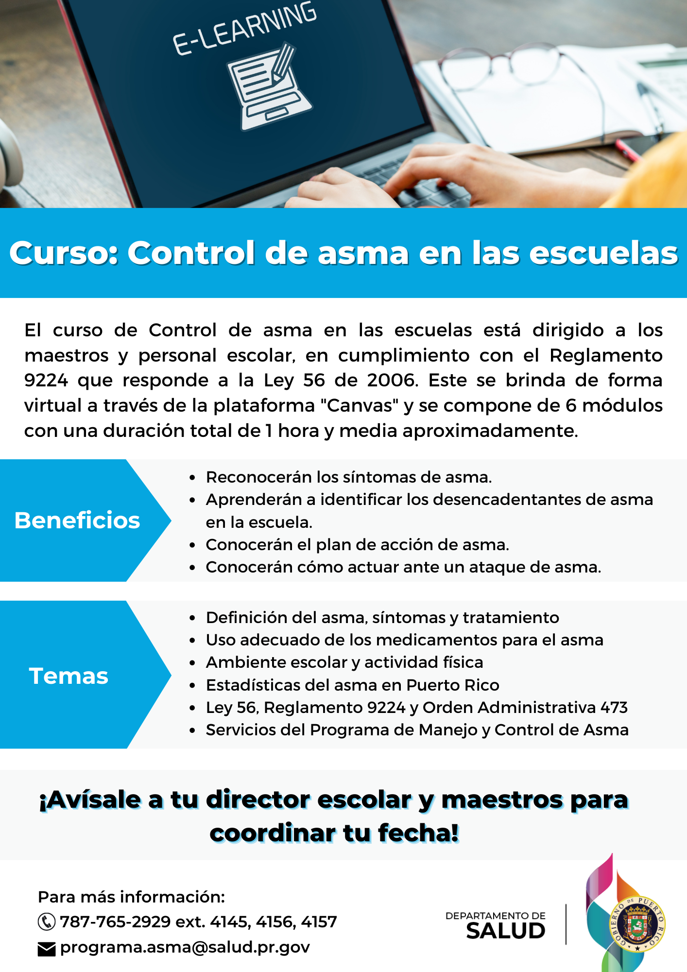 - Curso virtual “Control del asma en las escuelas” para la facultad escolar.