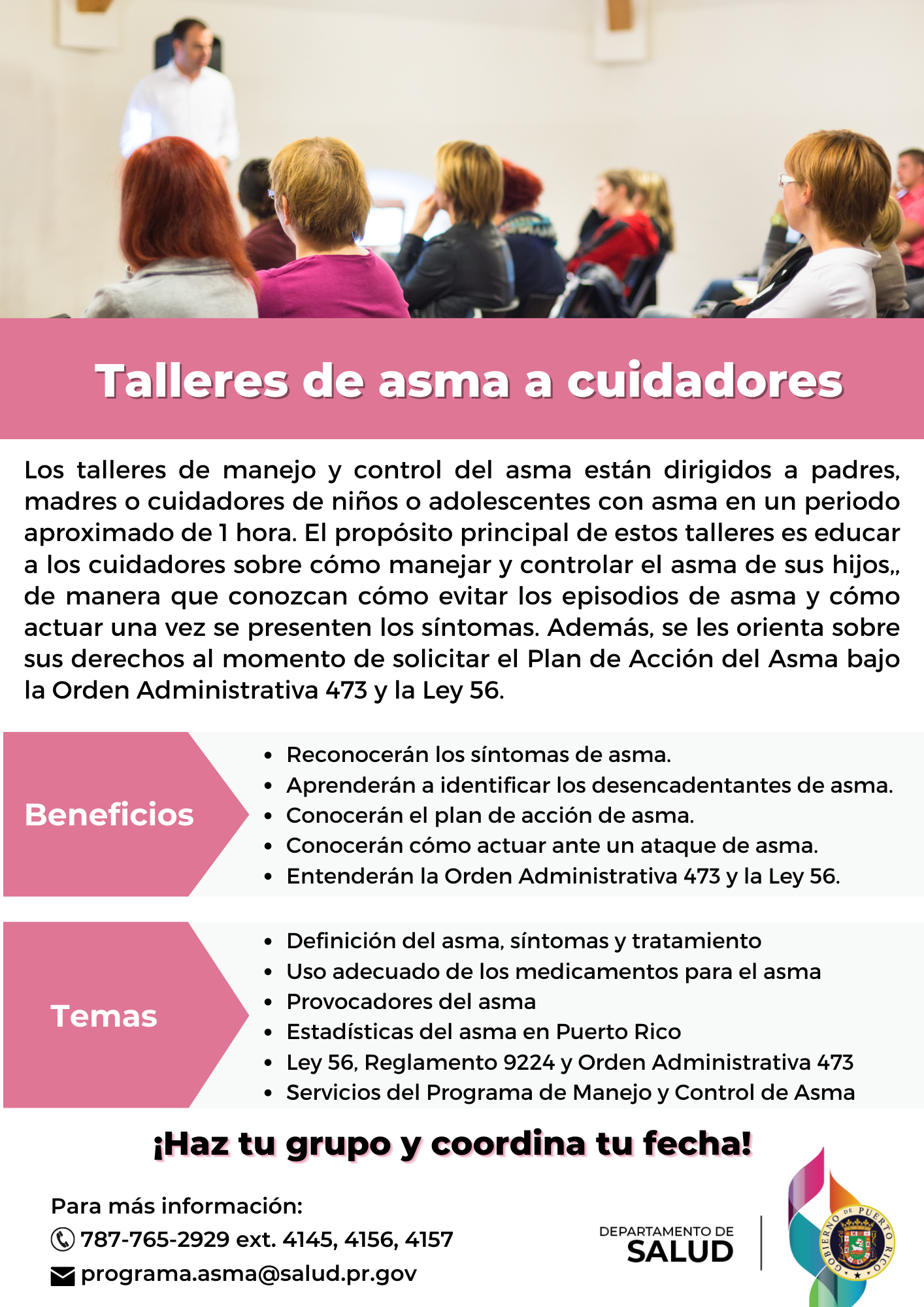 - Talleres del Manejo y Control de Asma dirigido a grupos de:
