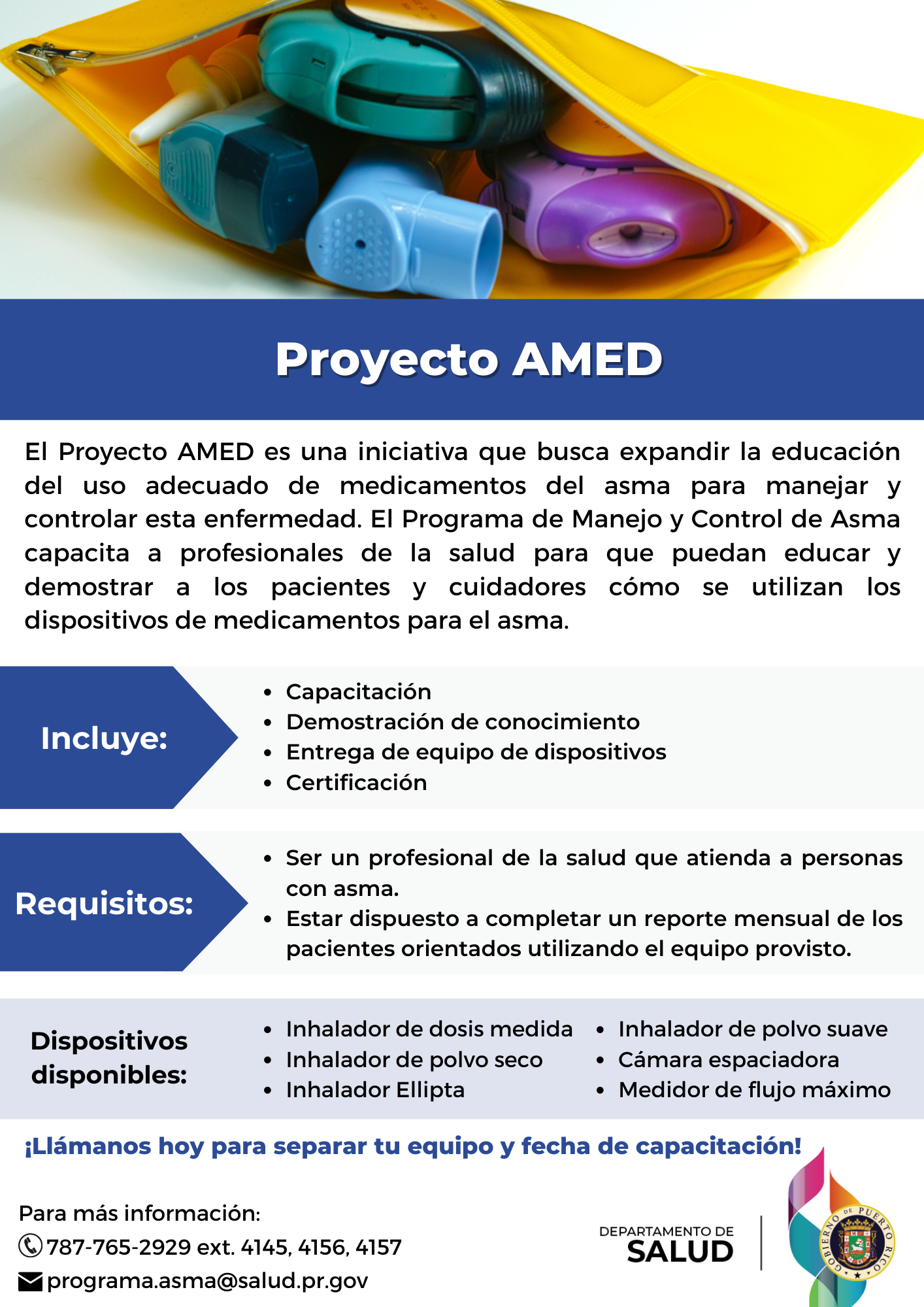 - Proyecto AMED (Asthma-Medication: Education and Demonstration): Capacitaciones para profesionales de la salud y otras personas comprometidas con la población asmática en Puerto Rico.