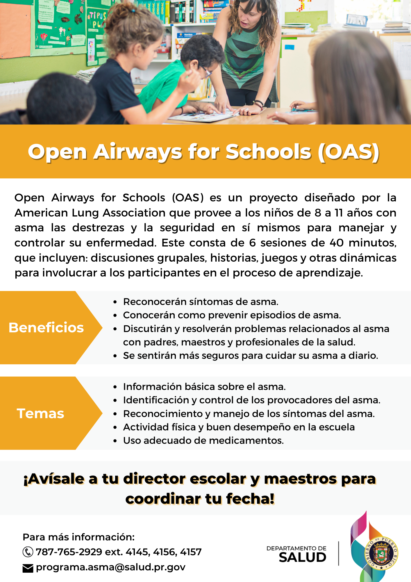 - Proyecto Open Airways for Schools para niños diagnosticados con asma de 8 a 11 años.