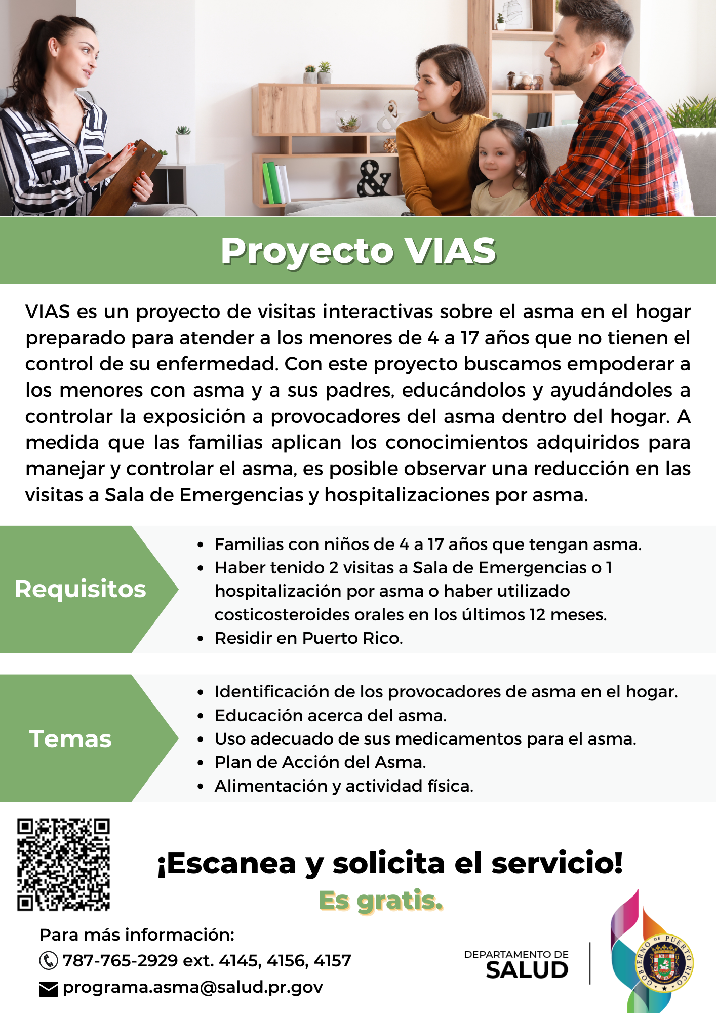- Proyecto VIAS: Visitas interactivas acerca del asma en el hogar para familias de niños con asma de 4 a 17 años.