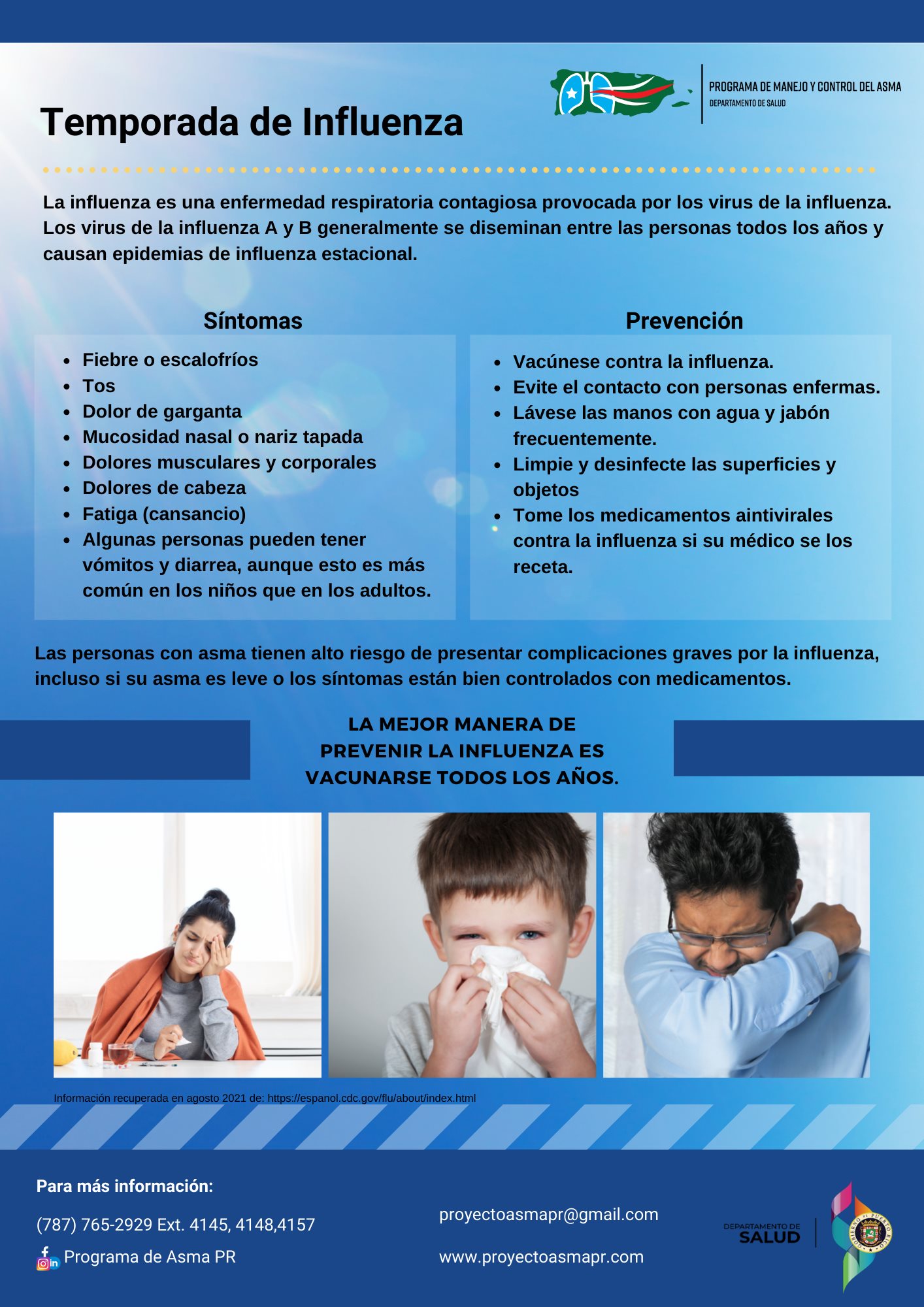 La influenza es una enfermedad contagiosa que se propaga a lo largo de los Estados Unidos cada invierno, generalmente entre octubre y mayo.