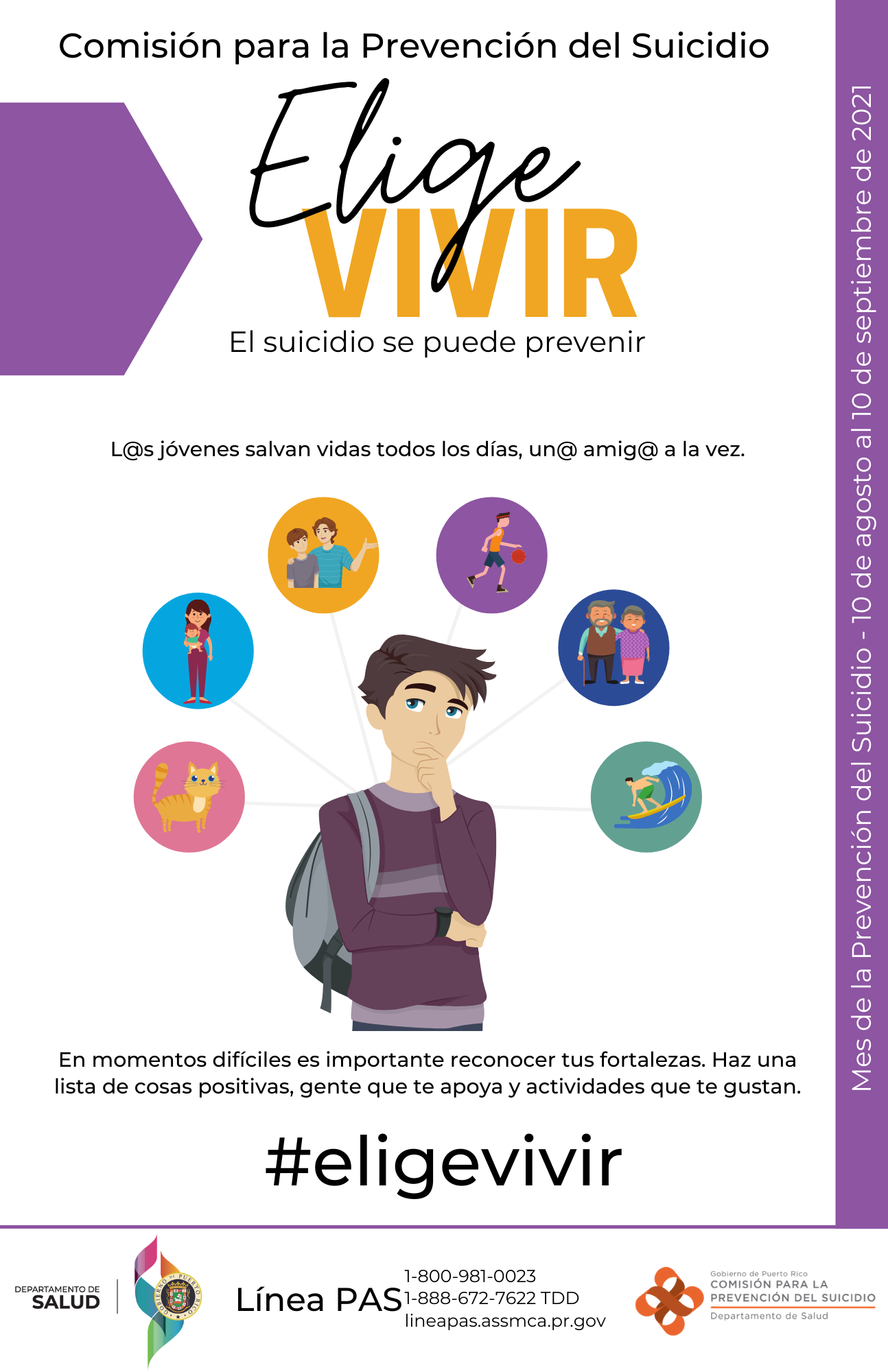 Promover, desarrollar, implantar, coordinar acciones y estrategias para la prevención del suicidio adoptando un enfoque integrador e interdisciplinario dirigido a individuos, a familias, a comunidades en riesgo, así como a profesionales de ayuda; haciendo énfasis en la investigación, en el desarrollo de programas de prevención e intervención y en la concienciación de la población respecto a la magnitud y seriedad del suicidio en Puerto Rico.